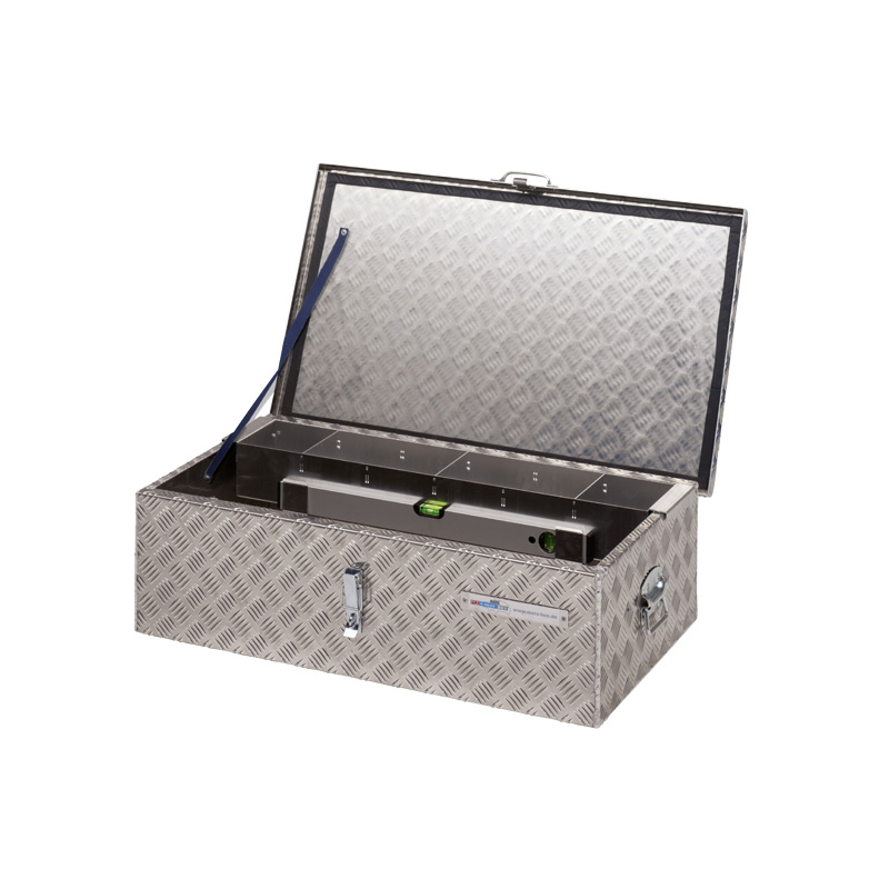 Die Aluminium-Riffelblech-Transportboxen B80 und B100 dienen zur Beförderung von kleinen Werkzeugen bzw. Kleinteilen. Ordnung halten ist ihre große Stärke. Darüber hinaus überzeugen sie durch hohe Robustheit bei geringem Eigengewicht. Beide Werkzeugboxen eignen sich für Anhänger oder Pritsche und können von Bauprofis genau wie von Heimwerkern eingesetzt werden.